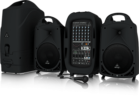 All of our portable PA systems have a built-in rechargeable battery and have additional products available such as wireless microphones, CD and AUX inputs, and SD and USB inputs making it easy to use, compatible with most devices and wire-free.